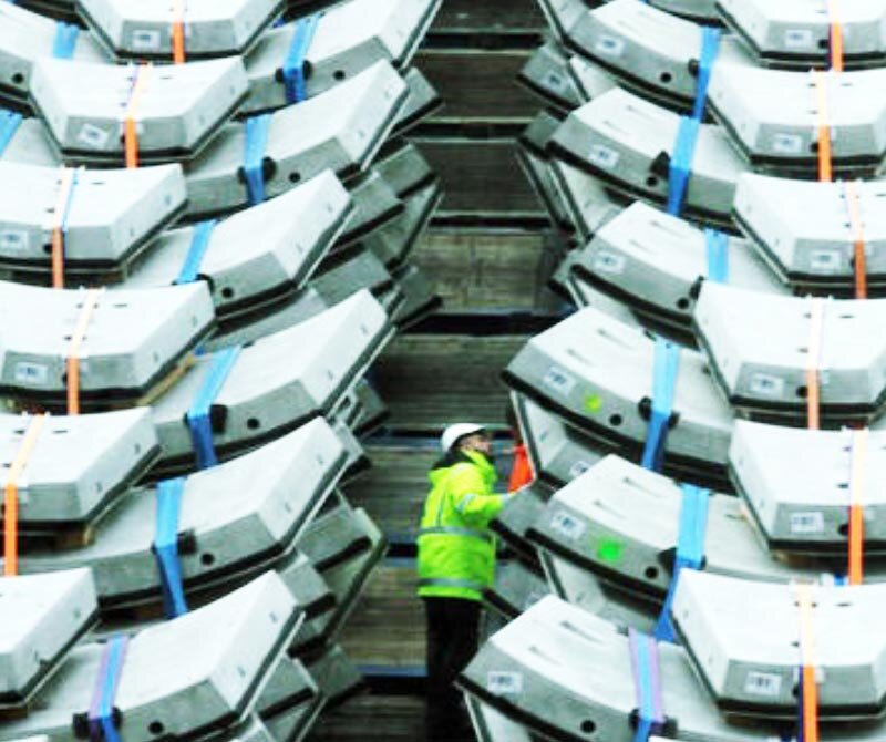 Produktion af specialbetonsegmenter til to nye metrotunneler i København. Produktion af betonelementer hos virksomheden Mobil Baustoffe i Murkan, Rügen. Tunnelsegmenterne blev sejlet fra Sassnitz færgeterminal til København.